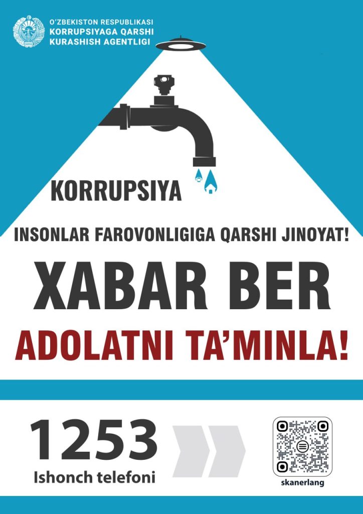 Korrupsiya haqida xabar berish — xavf emas, masʼuliyat. Siz boshlang – sizning ortingizdan boshqalar ham ergashadi.