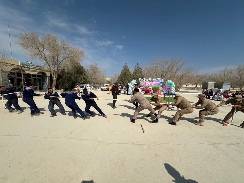 💐 Korxona ishchi-xodimlari uchun sumalak sayli va milliy o‘yinlar tashkil etilib, bayram yanada qizg‘in tus oldi. Erkaklar o‘rtasida armlesting va arqon tortish musobaqalari o‘tkazilib, ular kuch va chaqqonlikda bellashdilar.